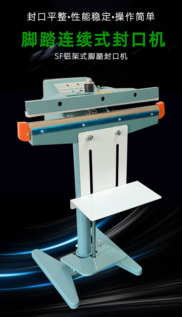- 操作靈活性高:全自動連續式封口機在運行過程中是按照預設程序連續工作的,對于包裝物品的形狀、大小和放置位置有一定要求。而鋁架腳踏封口機可以根據操作人員的意愿隨時停止或開始封口,雙手能夠更好地處理不規則形狀的物品,在包裝靈活性方面更具優勢。