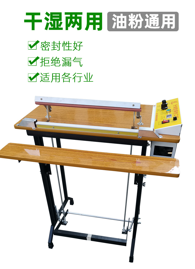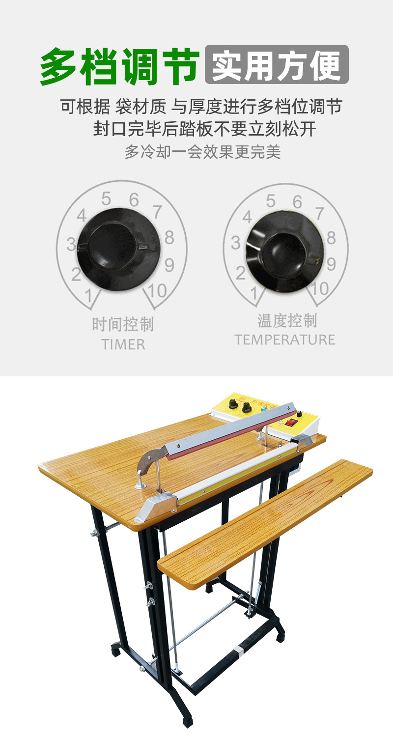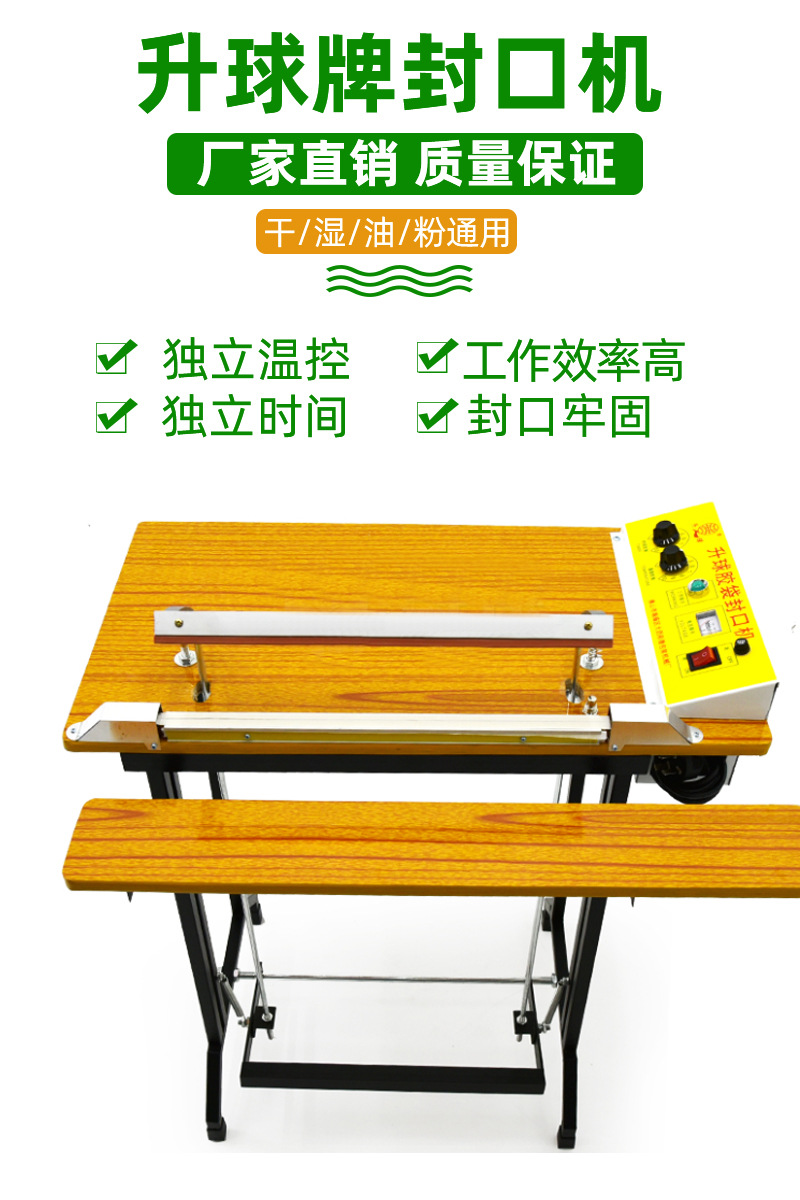 腳踏封口機使用方便,操作人員雙手可以自由地操作包裝材料,這對于形狀不規則、大小不同的物品包裝尤為方便