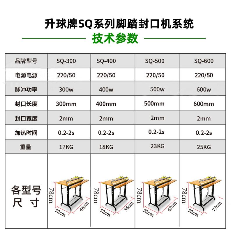 - 腳踏裝置:腳踏板是腳踏封口機的重要組成部分,通常設計有防滑紋理,以確保操作人員踩踏時的安全性和穩定性。腳踏板通過連桿與封口部件相連,連桿一般由金屬材質制成,具有足夠的強度和韌性,能有效傳遞力量。