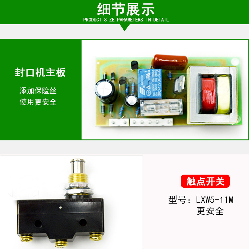 - 封口部件:主要包括封口模具,其形狀和材質會因封口類型和包裝材料的不同而有所差異。對于普通的塑料薄膜封口,模具通常是平面的,材質多為耐高溫的金屬,如不銹鋼。這樣的設計可以保證在加熱和壓力作用下,使包裝材料很好地融合在一起。