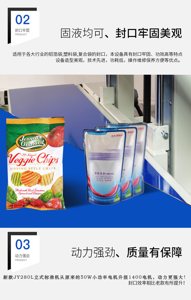 - 封口質量穩定:由于可以精確控制封口溫度、壓力和速度等參數,連續式封口機能夠確保封口質量的一致性和穩定性。封口牢固、平整,密封性良好,能夠有效防止包裝內容物泄漏、受潮或受到污染。在醫藥和化工等對包裝質量要求較高的行業,這種穩定的封口質量尤為重要。