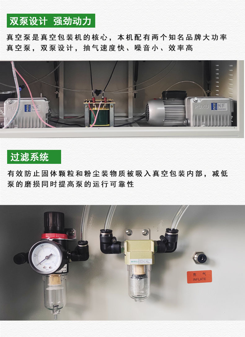 - 安全操作:設備需接地良好,操作人員避免觸碰運轉中的真空泵、抽氣管道等熱部件,熟悉緊急停止按鈕位置,防止意外發生。 7. 故障排查:若出現抽氣不徹底、封口不牢等問題,先查袋子對接、參數設置,再檢查真空泵、熱封裝置是否正常,簡單故障可自行排除,復雜的聯系專業維修