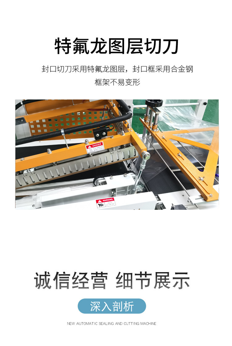 - 封切環節:當產品到達封切區域,機器自動從放膜裝置引出熱收縮膜,精準包裹產品。封切裝置中的恒溫熱封刀,在預設的溫度、壓力、時間參數下迅速動作,把薄膜切斷并在切口兩端封合,由此形成一個包裹著產品的膜套。熱封刀常采用鋁合金材質,導熱快且受熱均勻,確保封口牢固、美觀。