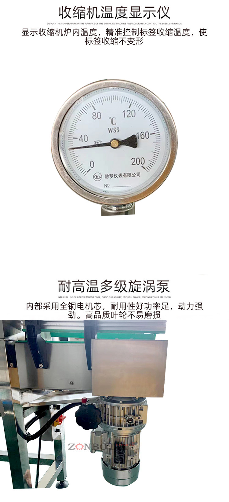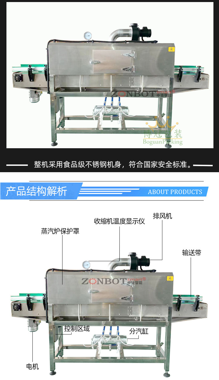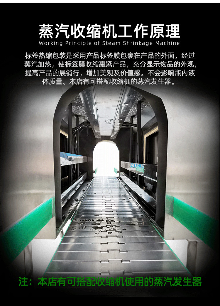 - 蒸汽收縮機(jī):利用蒸汽獨(dú)有的恒溫且溫度擴(kuò)散均勻的特性工作,設(shè)備通過(guò)加熱器加熱水產(chǎn)生蒸汽,使產(chǎn)品的收縮膜在蒸汽環(huán)境中均勻受熱收縮4。