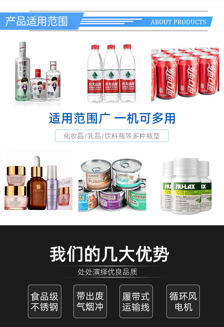 - 熱收縮機(jī):廣泛應(yīng)用于食品、飲料、醫(yī)藥、化妝品、日用品等行業(yè),如膨化食品、彩妝、護(hù)膚品、洗衣液等的包裝。