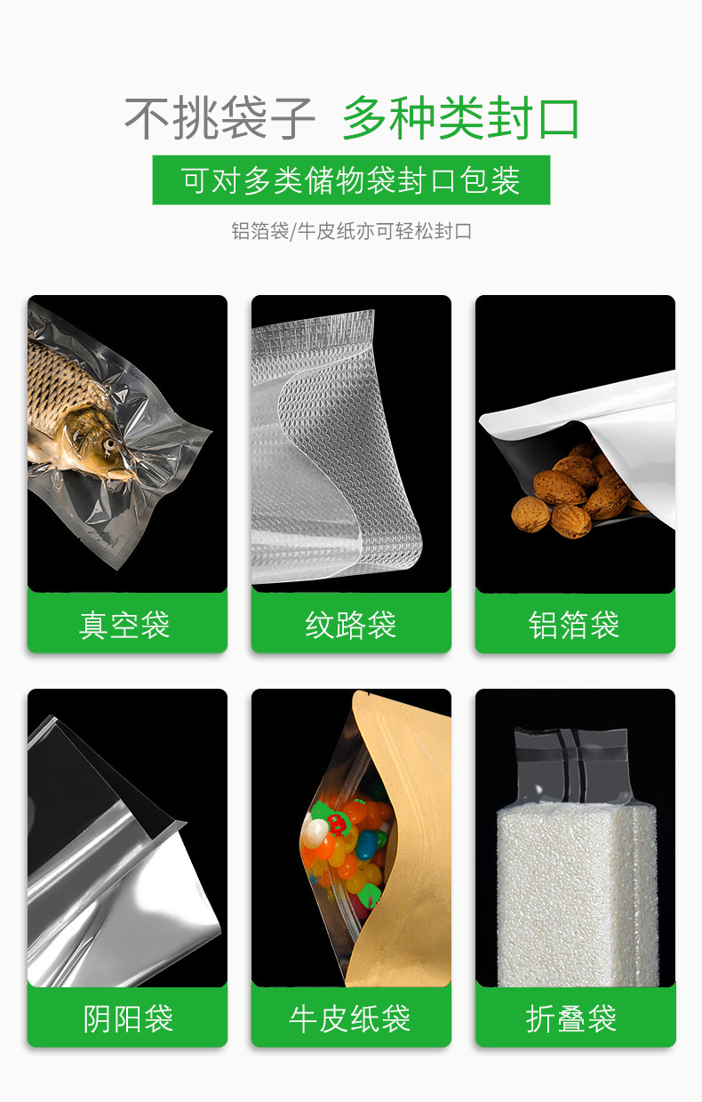 - 特點:封口速度快,效率高,且封口強度高,密封性好。對環境溫度和濕度的適應性強,不受外界因素的影響。但設備價格較高,且對包裝袋的材質和厚度有一定要求,一般適用于熱塑性塑料薄膜的封口