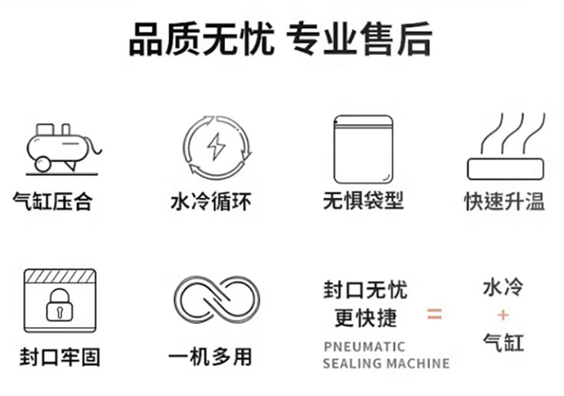 高效節能:氣動系統提供快速且強大的動力,可實現高速封口作業,提高生產效率。同時,水冷系統能快速冷卻封口部位,使設備可以快速進入下一個工作循環,且相比一些傳統的風冷方式更節能。