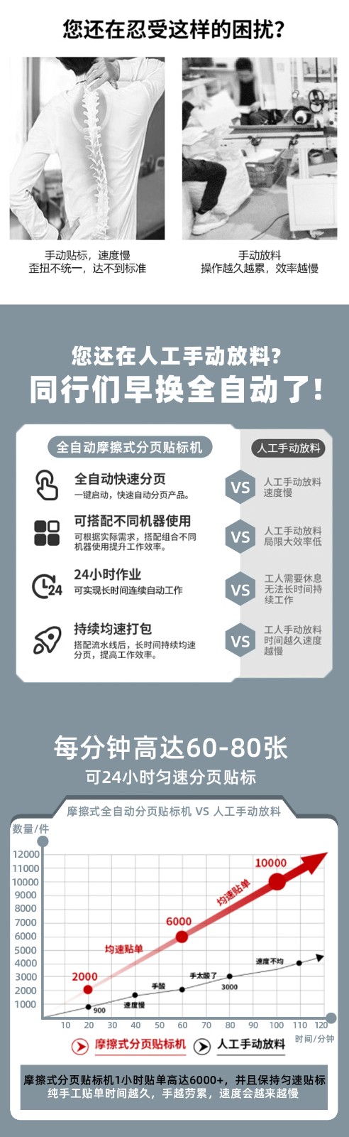 - 分頁(yè)原理:分頁(yè)機(jī)構(gòu)中的分紙輪在電機(jī)驅(qū)動(dòng)下轉(zhuǎn)動(dòng),其表面與標(biāo)簽疊接觸,利用摩擦力將最上面的一張標(biāo)簽分離出來(lái)。同時(shí),吸嘴在真空系統(tǒng)的作用下產(chǎn)生吸力,當(dāng)分紙輪分離出標(biāo)簽后,吸嘴迅速吸附住標(biāo)簽,防止其在輸送過(guò)程中偏移或掉落。擋紙裝置則確保標(biāo)簽疊保持整齊,使分頁(yè)過(guò)程穩(wěn)定、準(zhǔn)確。