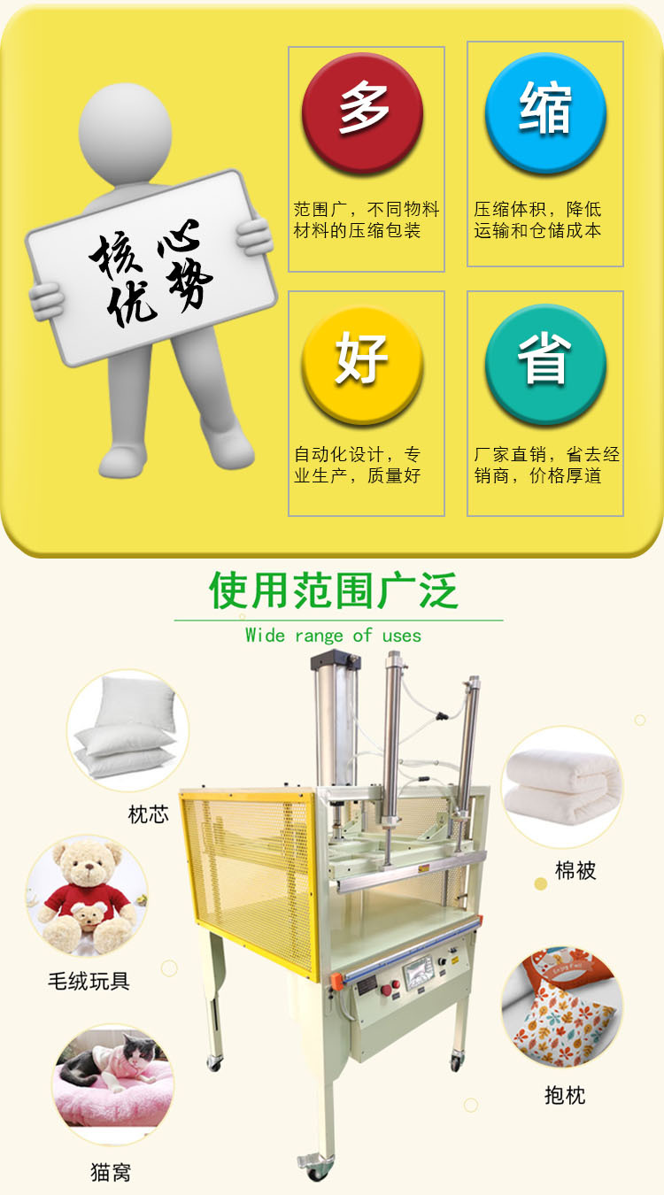 1. 準備工作:選擇合適的包裝材料,確保其與真空壓縮封口機兼容,并且無破損、無褶皺。將待包裝物品整理好,放入包裝材料中,盡量排除物品周圍的空氣。