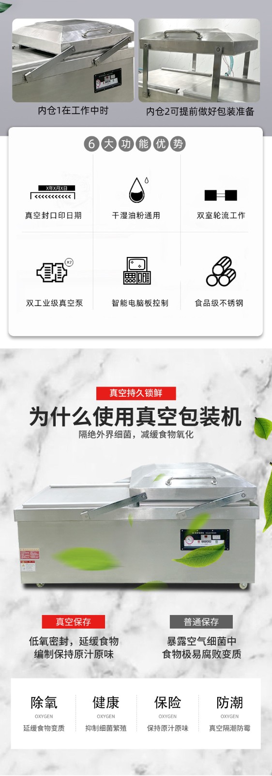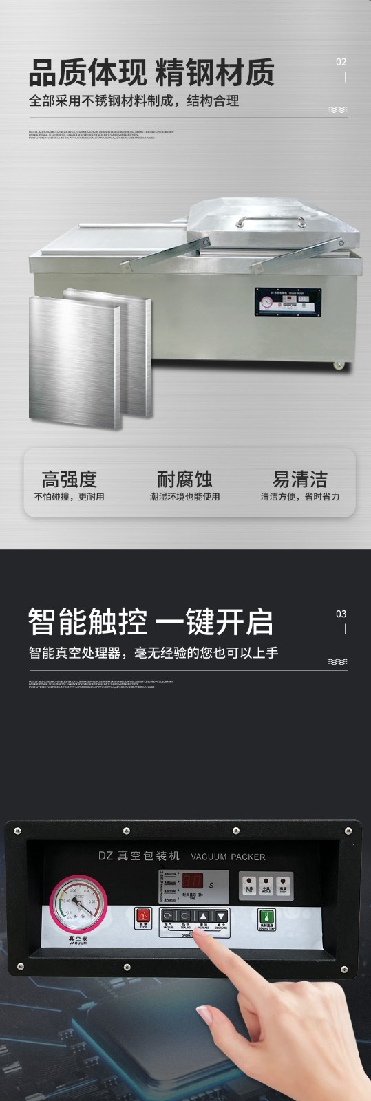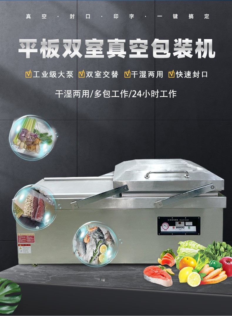 雙室平層真空包裝機(jī)的操作流程并不復(fù)雜,通常包括以下步驟: