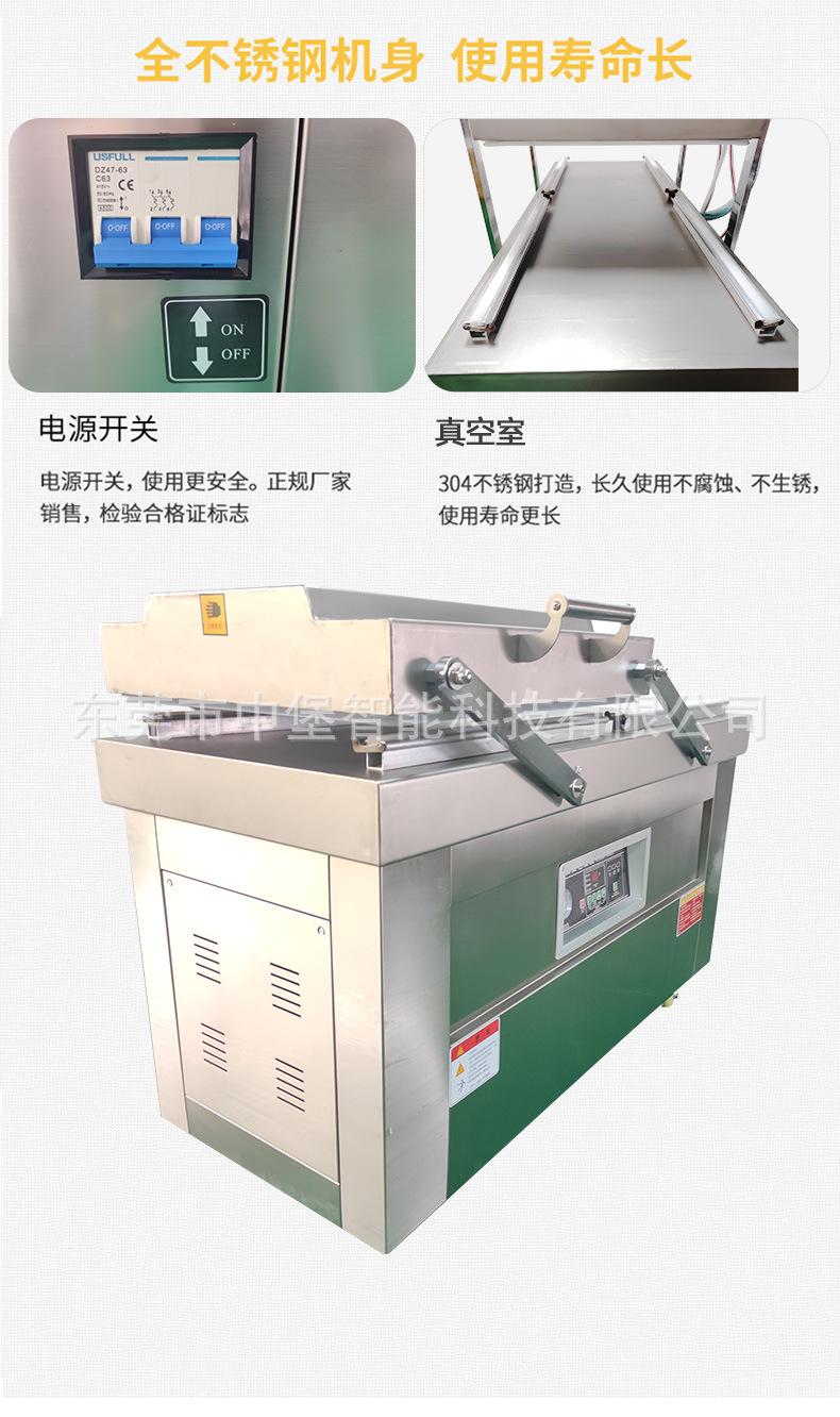 雙室真空包裝機(jī)的設(shè)計(jì)和制造考慮到了食品衛(wèi)生與防腐的要求,上工作室裝有一組熱壓封口機(jī)裝置,并采用平衡結(jié)構(gòu),可改變?nèi)魏挝恢猛A簦⒂芯彌_保護(hù)。此外,配置不銹鋼移動(dòng)式移架,移動(dòng)方便,不受地區(qū)限制,雙室真空包裝機(jī)廣泛適用:適用于食品行業(yè)、肉類、四川榨菜、醬制品、調(diào)味品、果脯、糧食、豆制品、化學(xué)品、藥材的顆粒、粉狀、液體等商品的真空包裝。