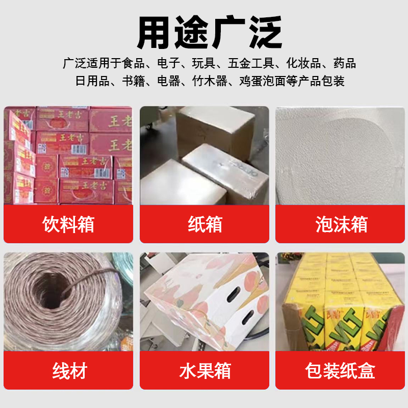 - 家居建材行業:可用于包裝小型家居用品、瓷磚、地板等產品。例如,對一些體積較小的家居裝飾品進行多件包裝,或者對瓷磚進行單張或多張集合包裝,方便搬運和銷售 。