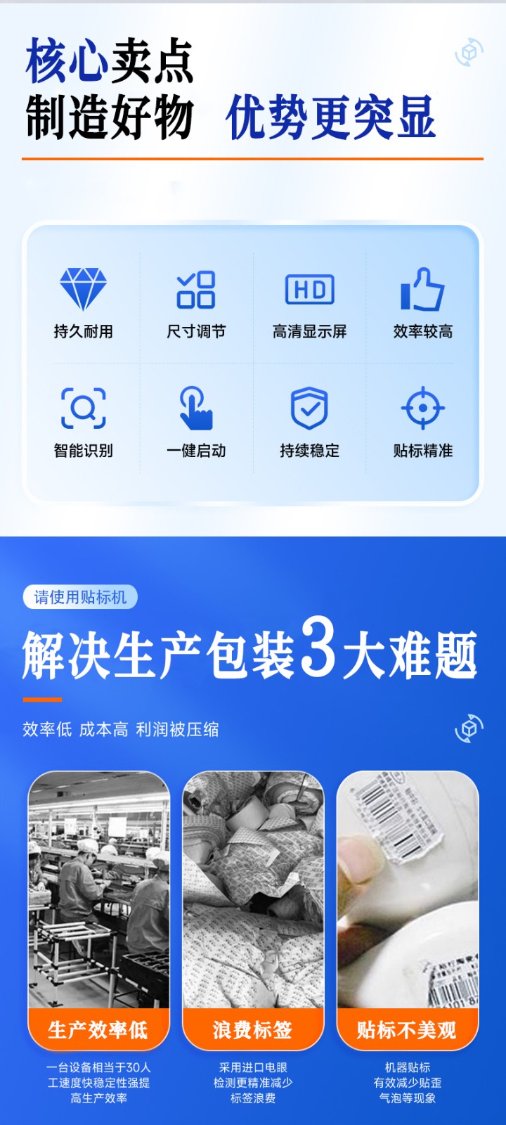 - 推送機構根據容器移動速度同步向下推送標簽,確保標簽在容器移動過程中 “無卡頓、無偏移” 地套合,套標位置誤差≤±0.5mm。