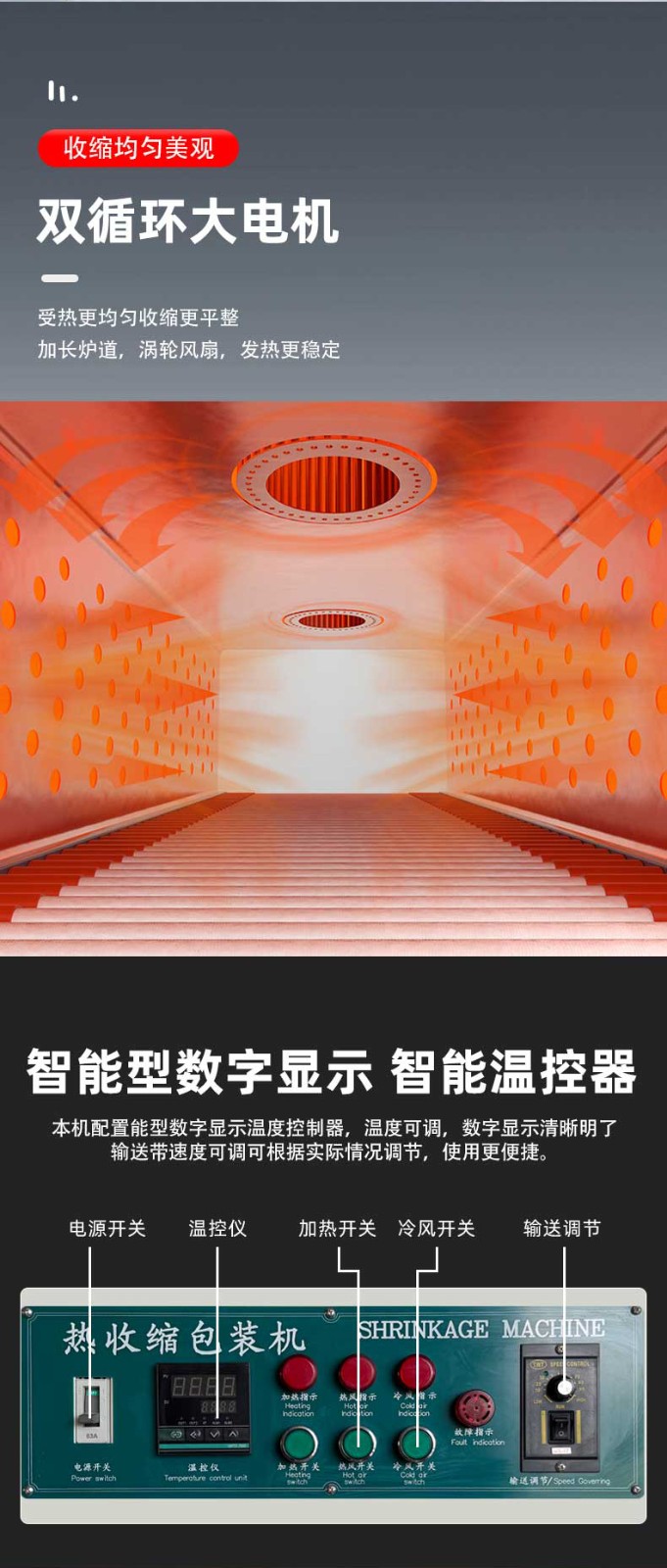 - 適用范圍廣:可適用于各種形狀和尺寸的產品包裝,如瓶罐類、盒裝類、桶裝類等,同時也能適應不同材質的熱收縮膜,如 PE、POF、PVC 等6。