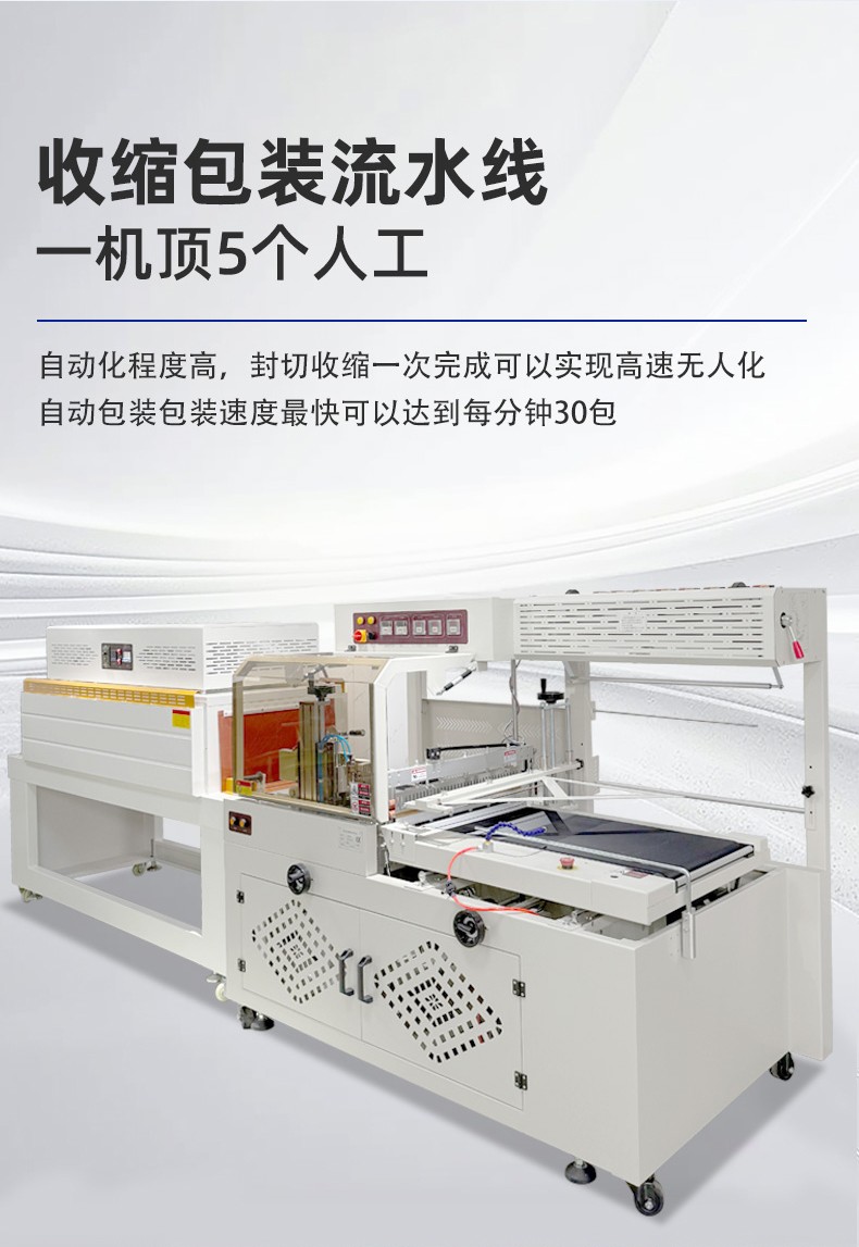 • 結構組成:一般由封切裝置、熱收縮爐、輸送系統、送膜機構和控制系統等組成。封切裝置用于對膜進行封口和切斷;熱收縮爐提供熱量使膜收縮;輸送系統負責傳送產品和包裝好的物品;送膜機構實現膜的輸送和定位;控制系統則用于設定和控制各部分的運行參數。
