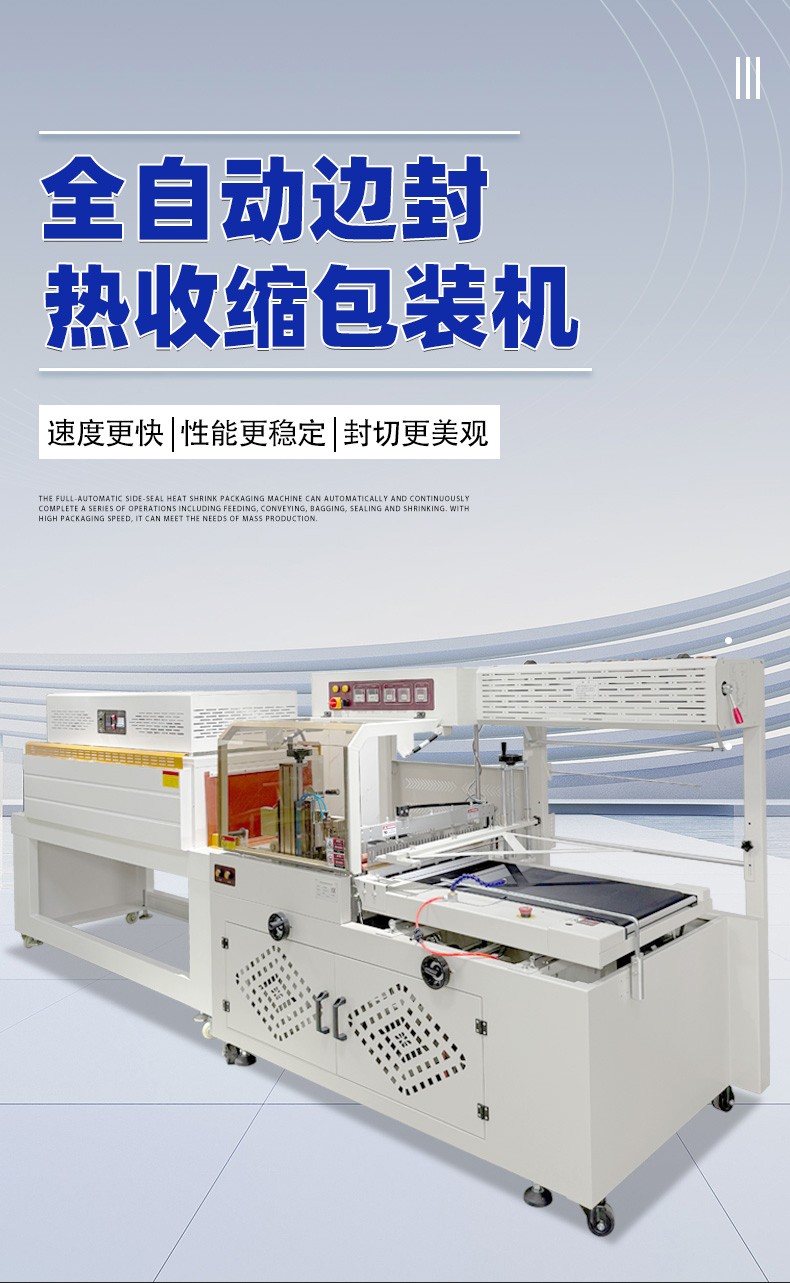 送料與定位:通過輸送帶將待包裝產品輸送至指定位置,利用光電傳感器等裝置對產品進行檢測和定位,確保包裝位置準確。 送膜與裹膜:自動送膜機構將熱收縮膜從膜卷上放出,根據產品尺寸調整膜的輸送長度,然后將膜圍繞產品周邊,形成對產品的初步包裹。 封切操作:采用恒溫封切技術,利用帶有耐高溫、抗粘涂層的封切刀,在設定的溫度和壓力下,對包裹產品的熱收縮膜進行封口和切斷,形成三邊密封的包裝形式,封切過程迅速且封口牢固,不易開裂或粘刀。 熱收縮定型:封切后的產品連同包裹的膜材進入熱收縮爐,爐內的加熱元件產生高溫熱風,使熱收縮
