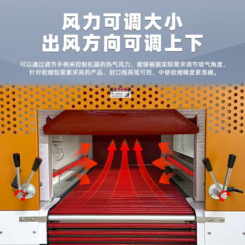 - 輸送系統(tǒng)穩(wěn)定:輸送采用新型輥軸,外套進(jìn)口纖維套管或耐高溫硅膠管,具有耐高溫、耐磨損、不燙膜、不變形等特點(diǎn),可長(zhǎng)久使用,且輥軸可選擇轉(zhuǎn)動(dòng)或不轉(zhuǎn)動(dòng),以滿足不同產(chǎn)品的收縮要求。
