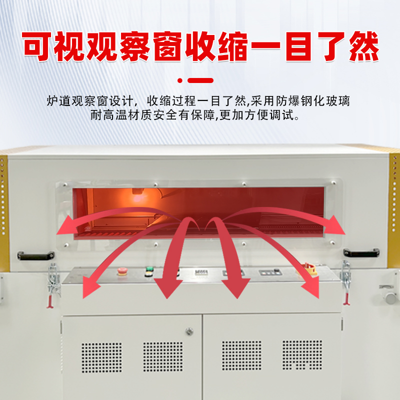 - 可視窗設(shè)計(jì):設(shè)備設(shè)有可視窗,能夠讓操作人員清晰地觀察到收縮過(guò)程,便于及時(shí)發(fā)現(xiàn)和調(diào)整包裝過(guò)程中出現(xiàn)的問(wèn)題,確保包裝質(zhì)量。