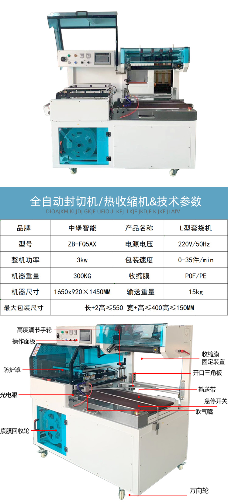 ZB-FQ5AX全自動封切機 塑封機 熱收縮包裝機