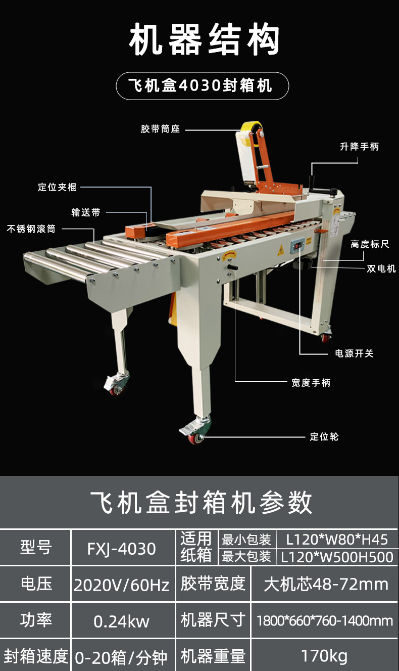4030型飛機(jī)盒電商專用快遞封箱機(jī)膠帶郵政1-12號(hào)紙箱包裝機(jī)