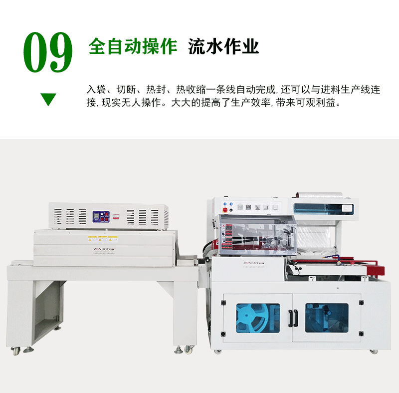 封切機(jī)是全自動無人化操作的包裝機(jī),廣泛用于批量生產(chǎn)包裝的流水作業(yè),工作效率高,自動送膜打孔,自動套膜封切,自動卷取廢料;只需手動調(diào)節(jié)導(dǎo)膜系統(tǒng)以及手動調(diào)節(jié)進(jìn)料輸送平臺,適用不同寬度及高度的產(chǎn)品。